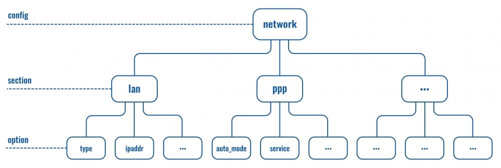 هنگام استفاده از uci show، بخشها با فرمت زیر نمایش داده میشوند: