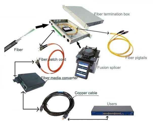 فیبر نوری برای بهره برداری نیاز به قطعات اتصال دارد. برای برقراری لینک فیبر نوری تجهیزاتی که نیازمندیم به قرار ذیل است:
