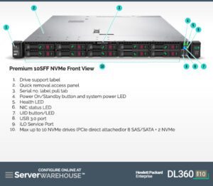 دستیابی به ظرفیت بیشتر با گزینههای پیکربندی درایو انعطافپذیر با حداکثر 10 درایو SFF و چهار درایو LFF به همراه گزینهای برای پشتیبانی از حداکثر 10 درایو NVMe PCIe SSD عملکرد، ظرفیت و قابلیت اطمینان بیشتری را برای برآورده کردن بخشهای مختلف مشتری و نیازهای حجم کاری در شرایط اقتصادی مناسب ارائه میدهد.