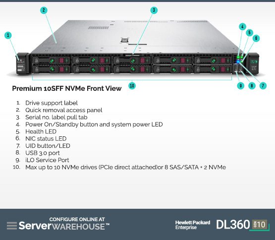 شاسی پریمیوم 10 SFF NVMe توانایی ترکیب و تطبیق SAS/SATA و NVMe را در یک شاسی به همراه 8 + 2 SFF و 4 شاسی LFF فراهم می کند که از گزینه های ذخیره سازی جدید uFF و M.2 پشتیبانی می کند.