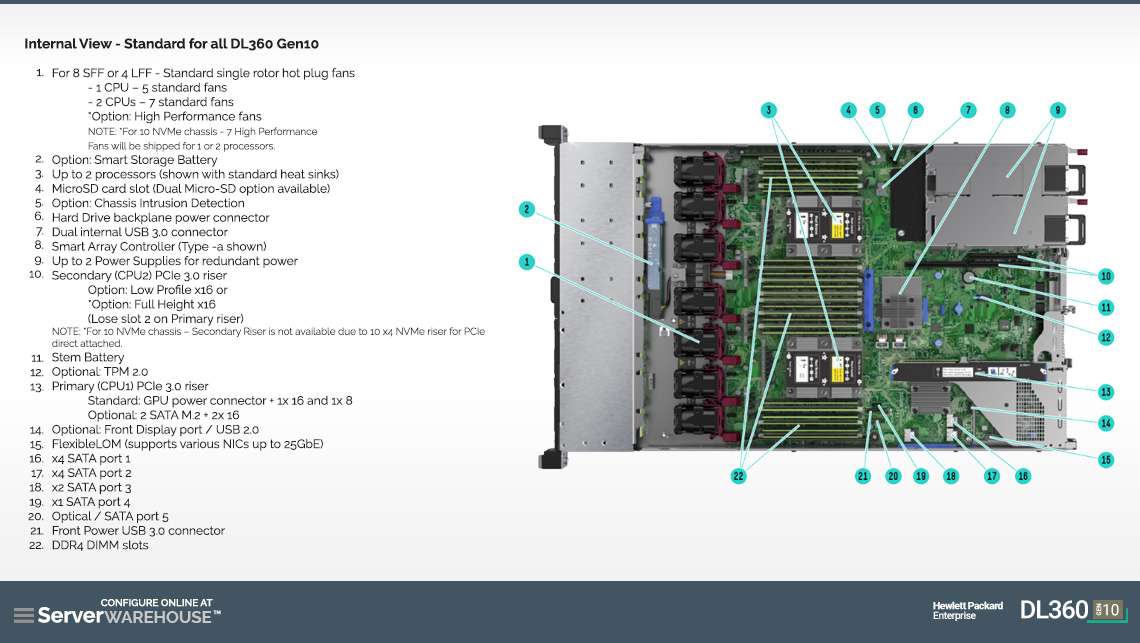 دستیابی به ظرفیت بیشتر با گزینههای پیکربندی درایو انعطافپذیر با حداکثر 10 درایو SFF و چهار درایو LFF به همراه گزینهای برای پشتیبانی از حداکثر 10 درایو NVMe PCIe SSD عملکرد، ظرفیت و قابلیت اطمینان بیشتری را برای برآورده کردن بخشهای مختلف مشتری و نیازهای حجم کاری در شرایط اقتصادی مناسب ارائه میدهد.