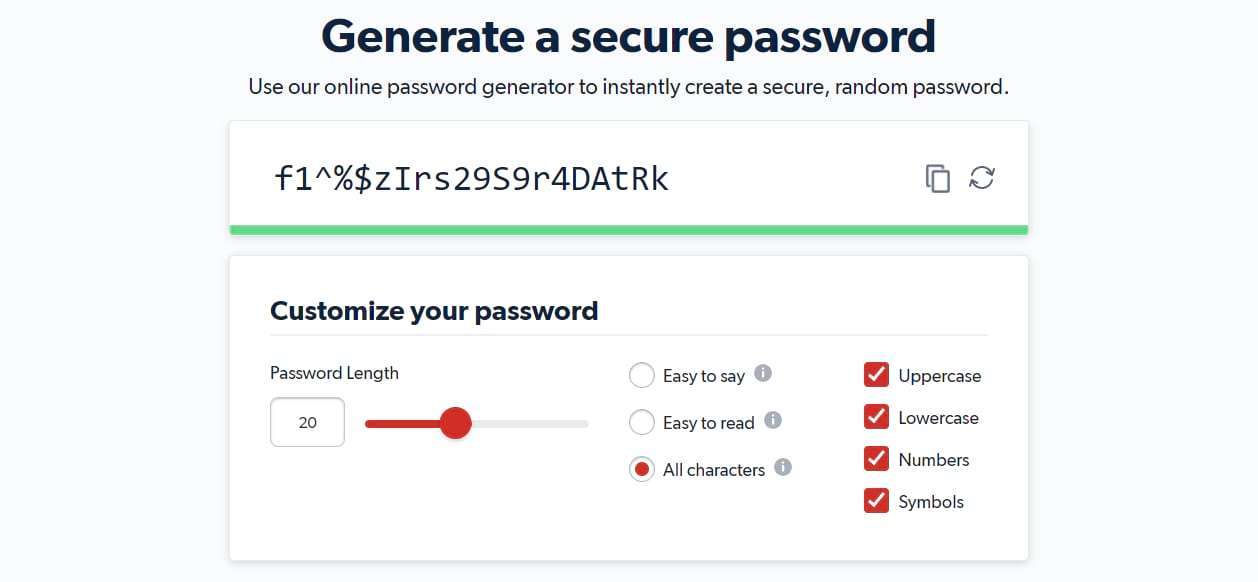 در بهترین حالت، رمز عبور شما یک رشته پیچیده و طولانی از کاراکترهای تصادفی است. اکیداً توصیه می کنیم از یک مدیر رمز عبور استفاده کنید. از وب سایتی مانند 1Password یا LastPass برای ایجاد یک رمز عبور قوی و غیرقابل حدس زدن استفاده کنید.